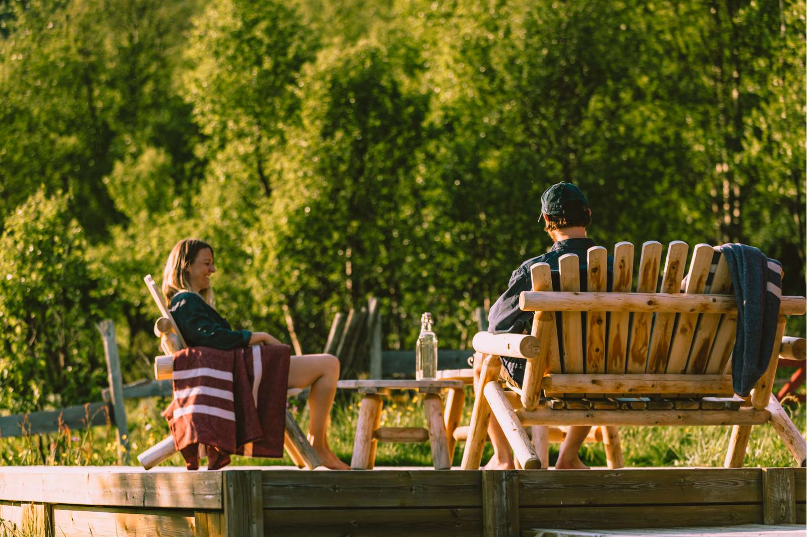 Log toseter gir plass for to og passer perfekt utenfor tømmerhytta på fjellet. De robuste rundstokkene gir en flott følelse av å være langt ute i villmarka. Det er bare å tenne opp i utepeisen, lene seg tilbake og nyte flammene til langt på natt.